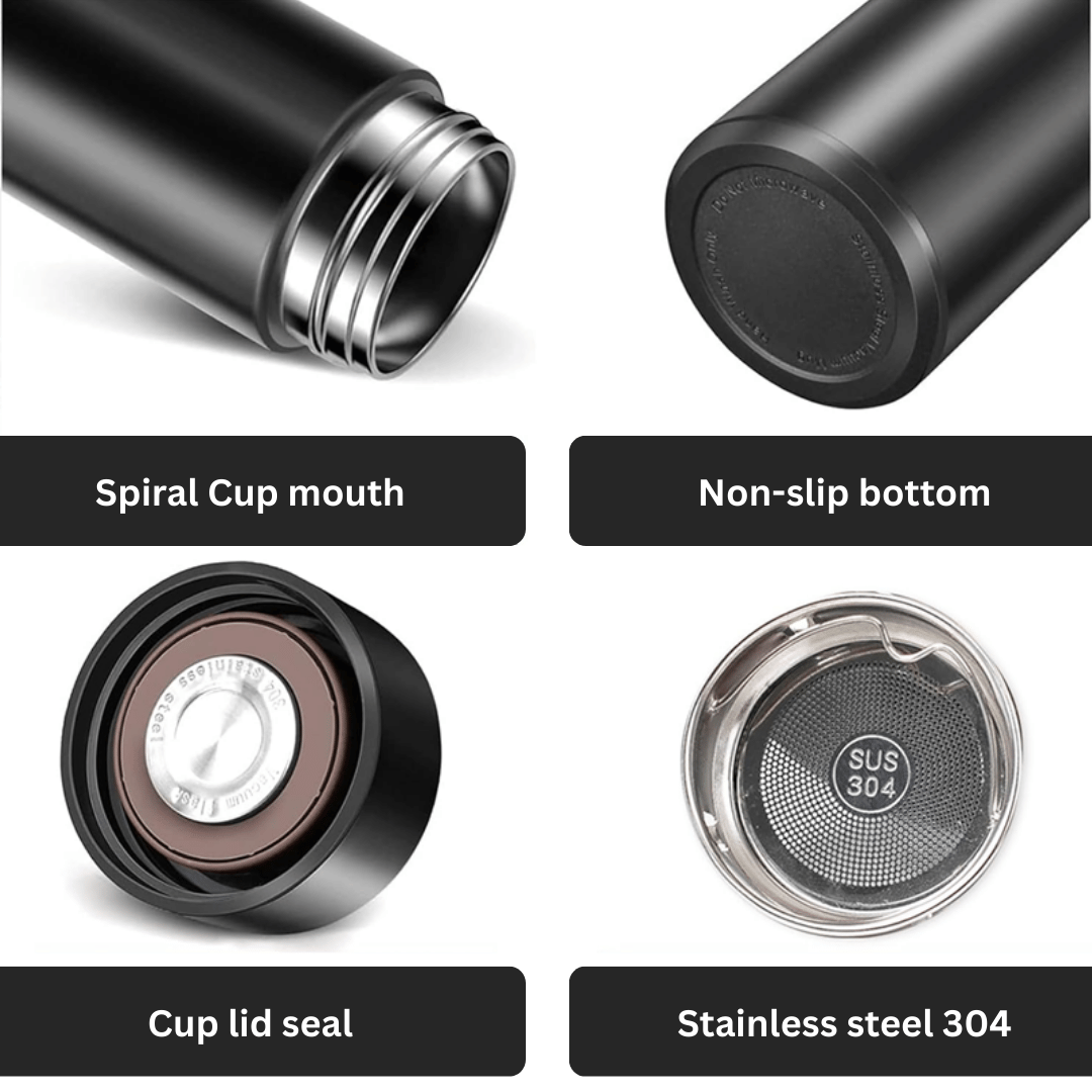 The leakproof design ensures no spills in your bag, while the sleek, modern look makes it perfect for office desks, school backpacks, gym sessions, and road trips. Lightweight yet sturdy, this bottle combines technology, style, and practicality in one smart product.
